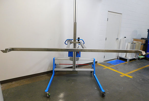 Forks are a pretty common tooling for RonI, but the lifter shown below reflects an extremely wide set of forks!! The customer of this lifter is picking up rolls 6-8″ in diameter x 2.5″ core x 46″ – 83″ wide with a maximum weight of 110-lbs. The forks must be spaced extremely far apart to accommodate the 83″ wide rolls.